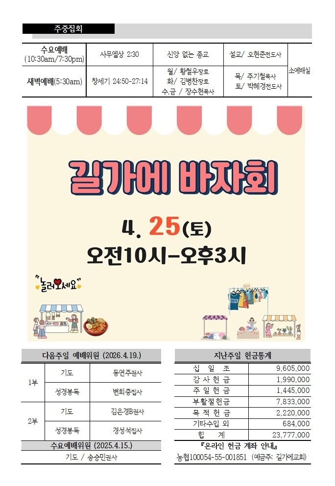 온라인 헌금 계좌 안내
