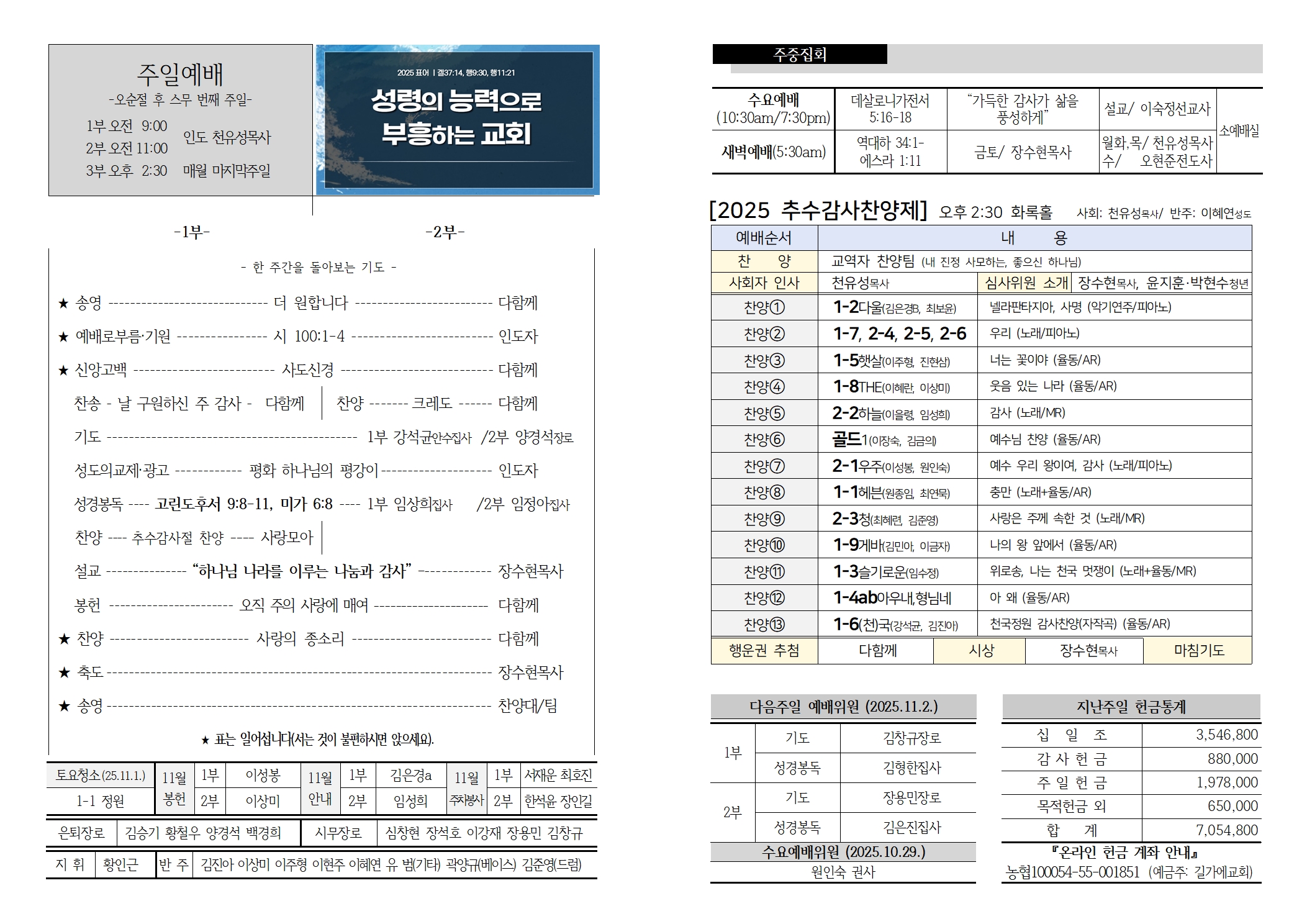 *계좌이체시 헌금을 구분해주시고 주민번호 뒷자리를 써 주세요.